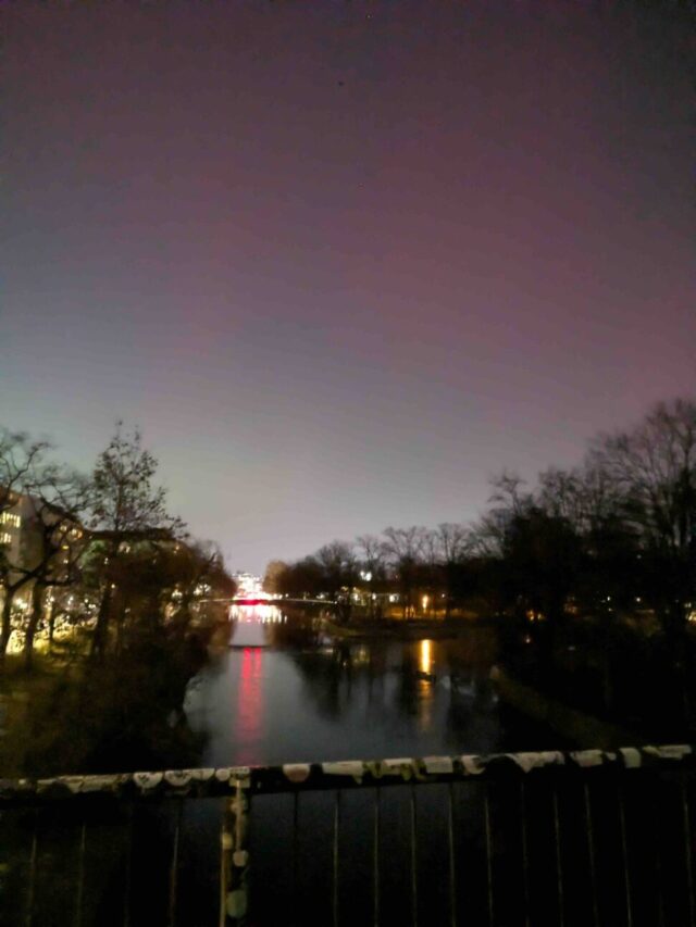 2026年1月の中旬、強い太陽嵐でベルリンでもオーロラ!というので夜中出掛けて撮った。肉眼だとぼんやり明るい程度だった。
